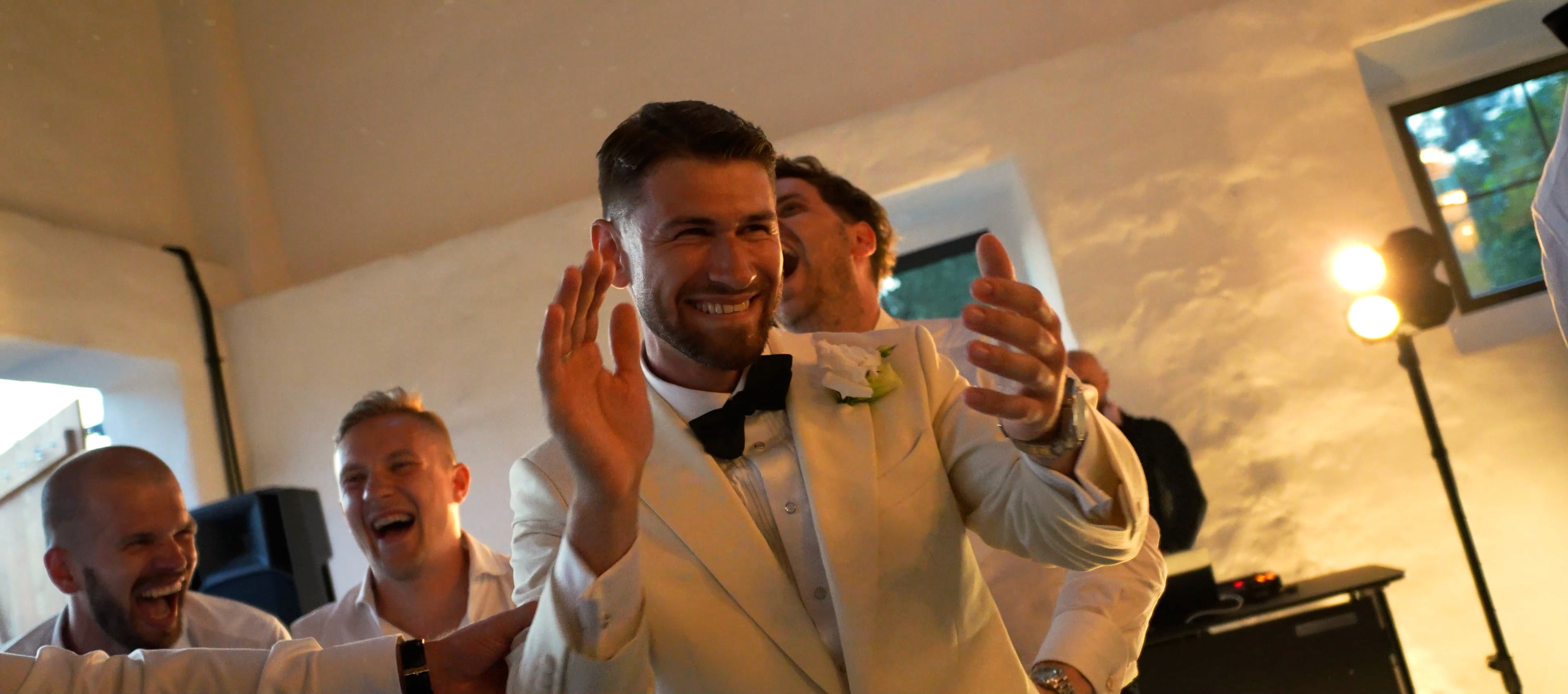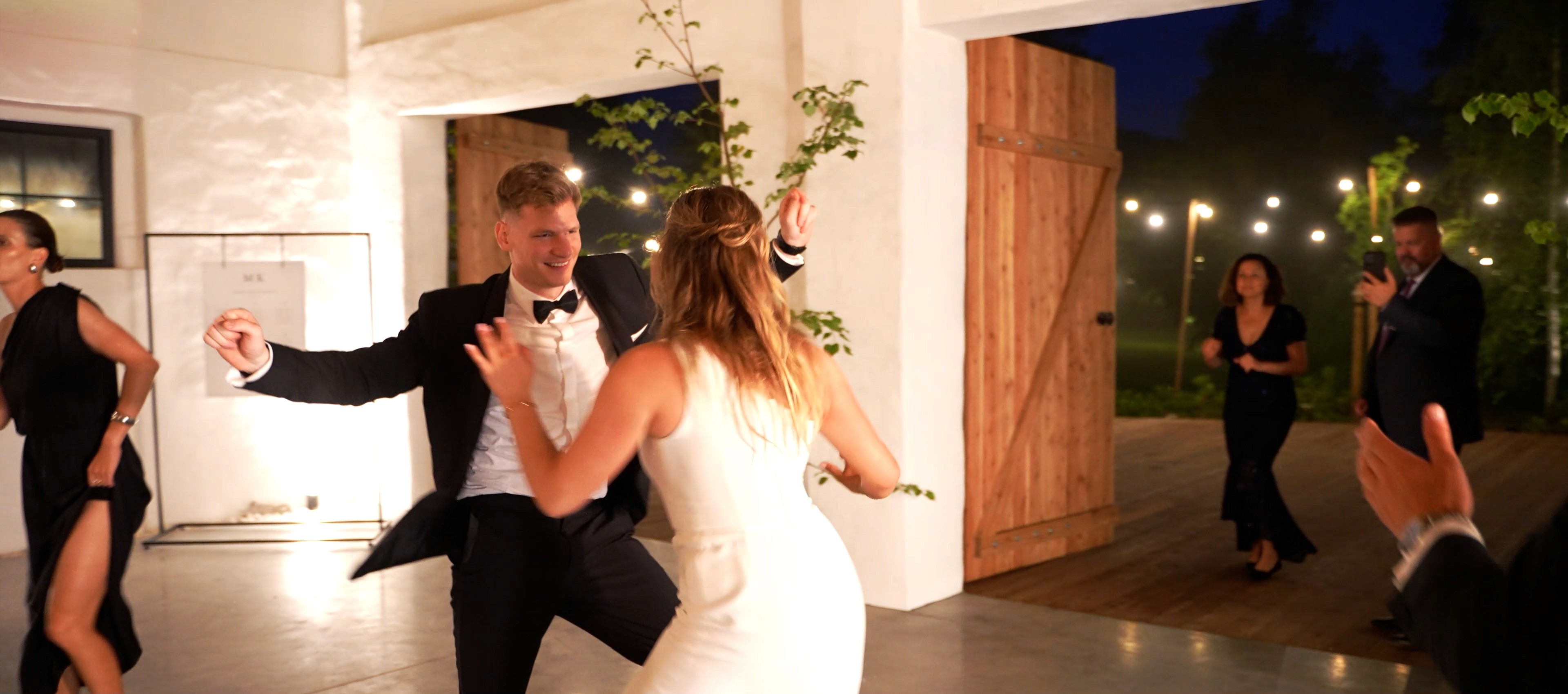 Są chwile pełne skupienia i wzruszenia. Są też momenty głośne, spontaniczne i nie do zapomnienia. Ten film płynnie przechodzi między jednym a drugim, pokazując, jak naturalnie zmienia się atmosfera dnia — od intymnych przygotowań po parkiet pełen energii.